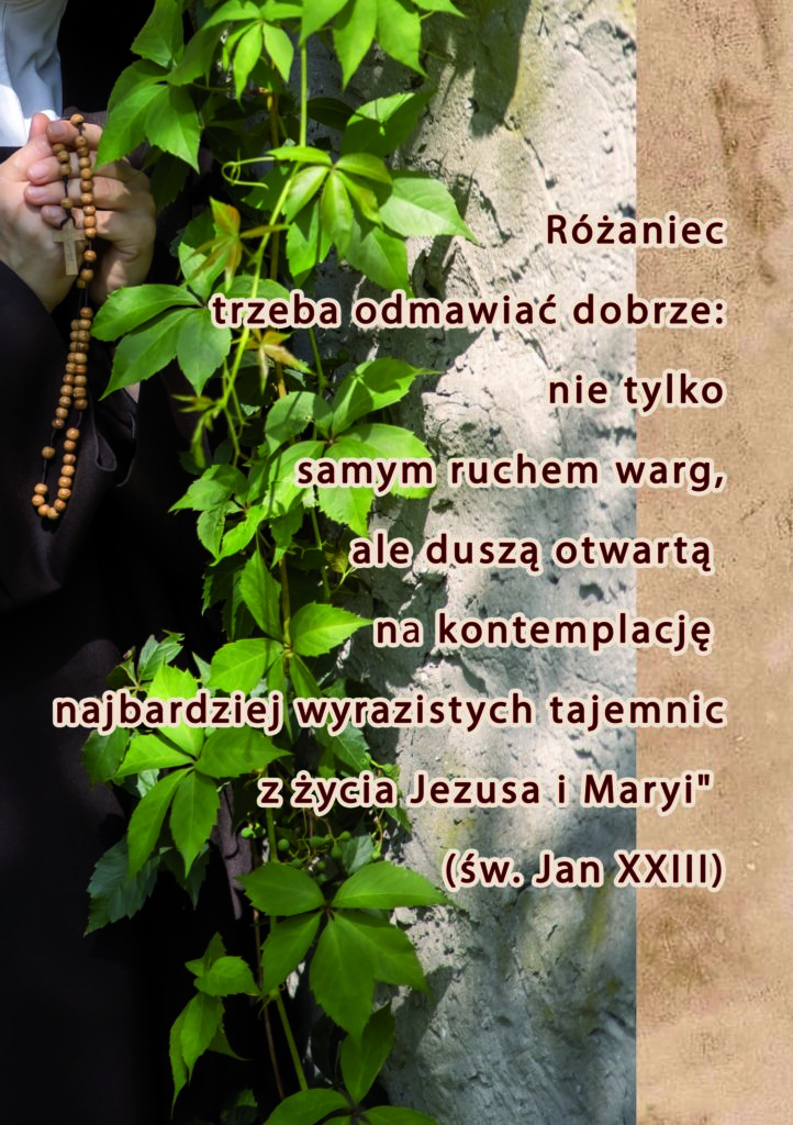 Słowa s. Łucji z Fatimy: „Matka Boża nadała modlitwie różańcowej nową skuteczność. Dała nam tę skuteczność w taki sposób, że nie ma takiego problemu, przejściowego czy duchowego, jak bardzo trudnym by nie był, w naszym życiu osobistym, w życiu naszych rodzin, świata czy zakonnych wspólnot, a nawet w dziejach ludów i narodów, których by nie rozwiązał różaniec.