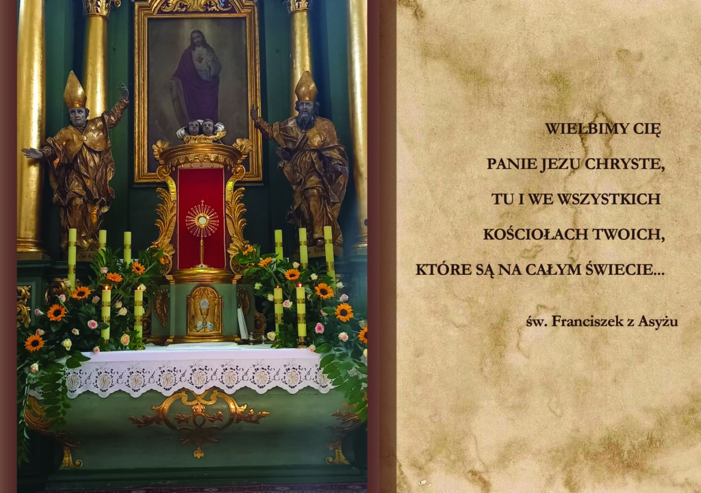 Pragniemy przypomnieć o wielkiej łasce bieżącego roku. Trwamy w Roku Łaski od Pana – PODWÓJNY JUBILEUSZ I DAR ODPUSTU ZUPEŁNEGO DLA NAWIEDZAJĄCYCH NASZ KOŚCIÓŁ. Przeżywamy 40 – lat adoracji JEZUSA w Najświętszym Sakramencie i 800 lat od śmierci św. Franciszka z Asyżu. Przejmijmy się tym. Niech czas nie ucieka nam przez palce. Ta zbieżność rocznic, nie jest przypadkowa. Św. Franciszek pisał wyjątkowe rzeczy o Eucharystii.